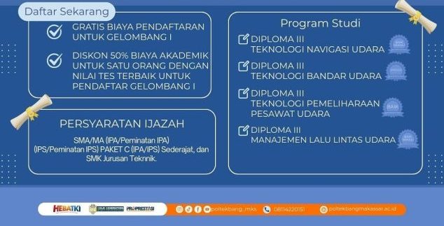 Saatnya wujudkan cita-cita di dunia penerbangan bersama Politeknik Penerbangan Makassar.